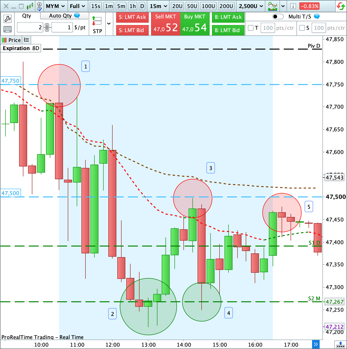 Los bajistas lograron alcanzar el Soporte 2 mensual en dos ocasiones [2][4] antes de dejar que el mercado rebotara durante la segunda parte de la sesión.