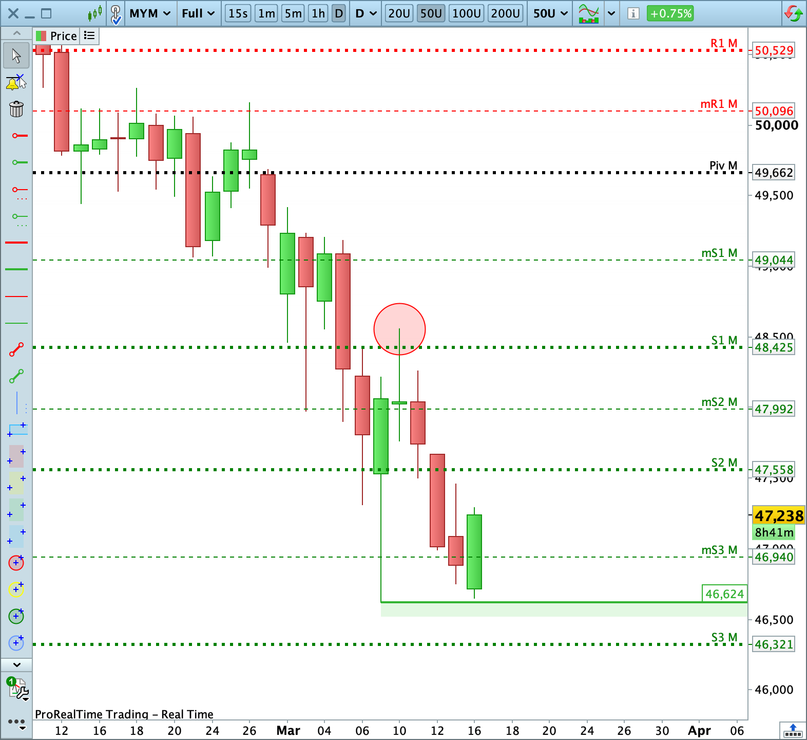 En este contexto, mantengo una visión bajista con el objetivo de ir a buscar los stop-loss de los compradores en los 46 624 puntos, y potencialmente el Soporte 3 mensual de los 46 425 puntos si la presión vendedora se mantiene a lo largo de la sesión.