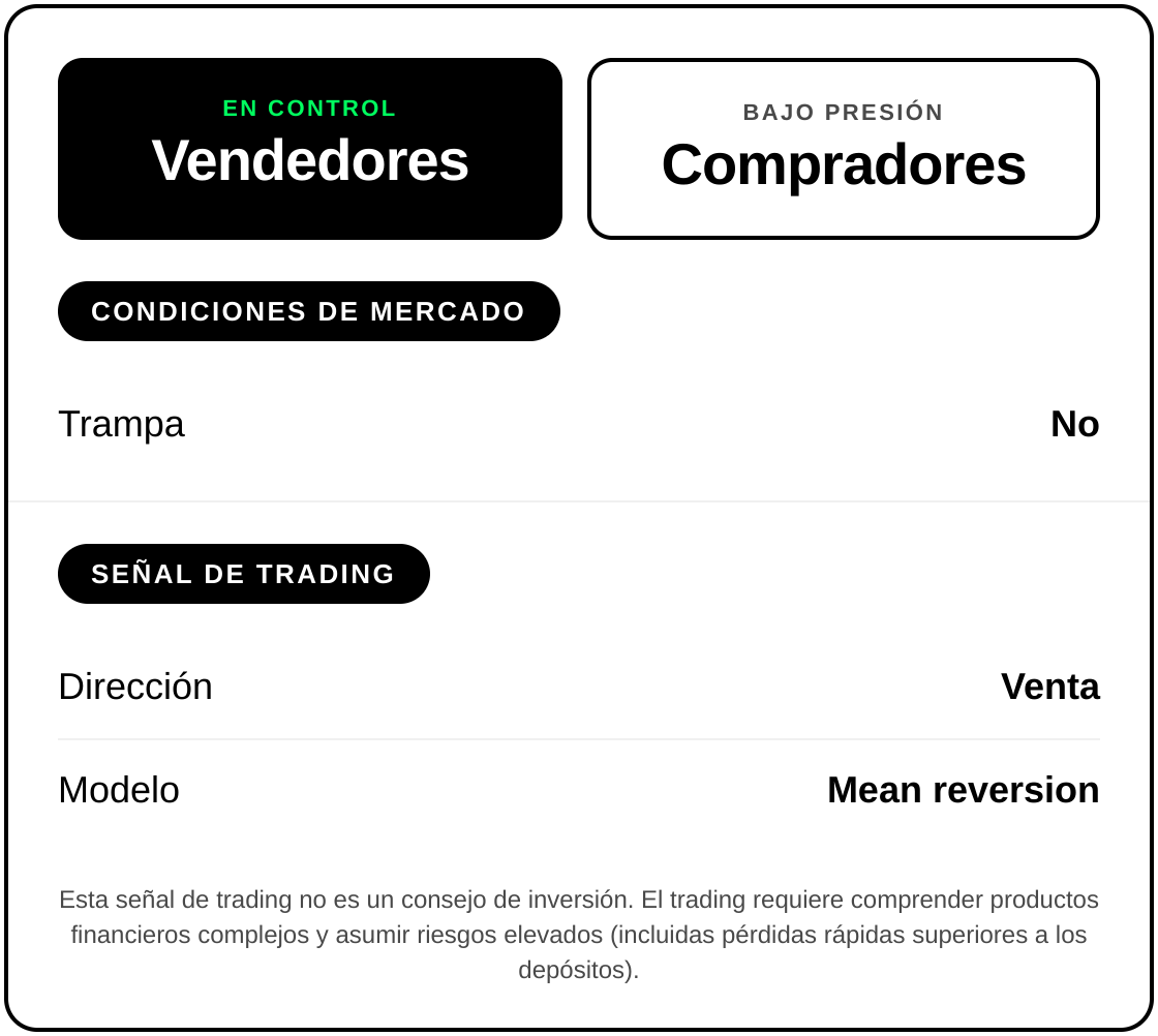 A pesar de la intensidad de la caída, los vendedores mantienen una postura relativamente prudente y los compradores conservan cierto optimismo, lo que sugiere que el movimiento bajista todavía tiene recorrido.