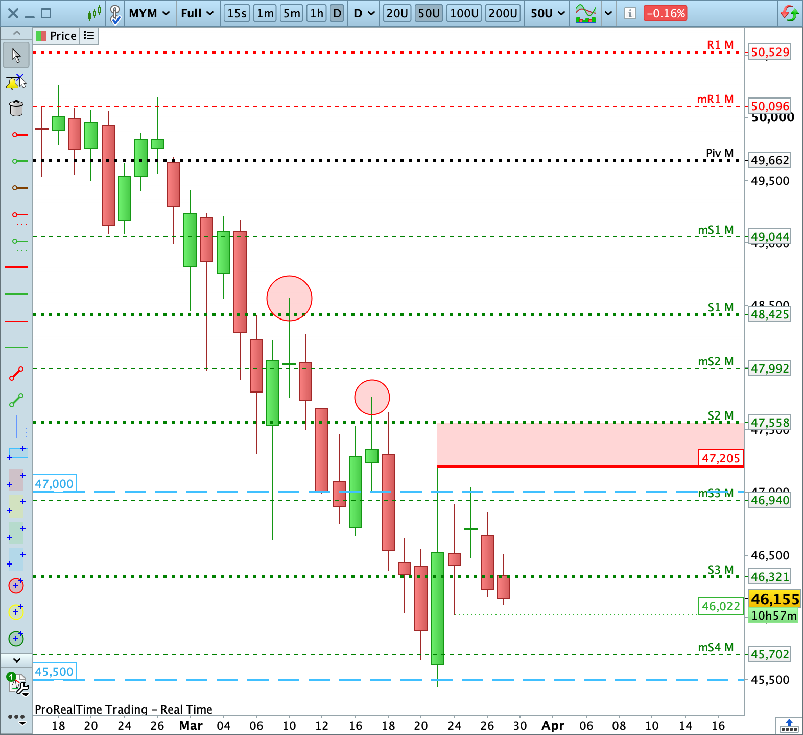 En este contexto, mantengo una visión bajista y priorizo las posiciones cortas, pero recogiendo beneficios con rapidez en los niveles clave intradía, al menos mientras los compradores no queden realmente atrapados en el rebote actual, algo que podría ocurrir por encima de la resistencia de los 47 205 puntos.